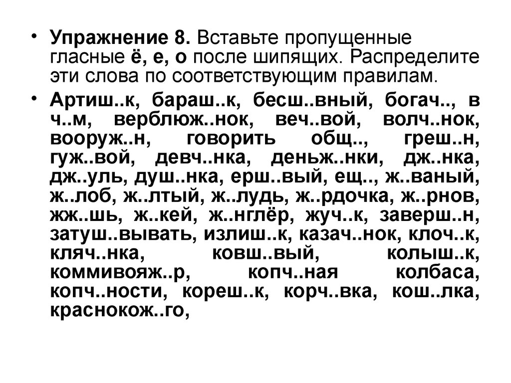 После шипящих в корне - проверка (пчёлка - пчела) или словарное слово (крыжовник, шофёр, жонглёр)